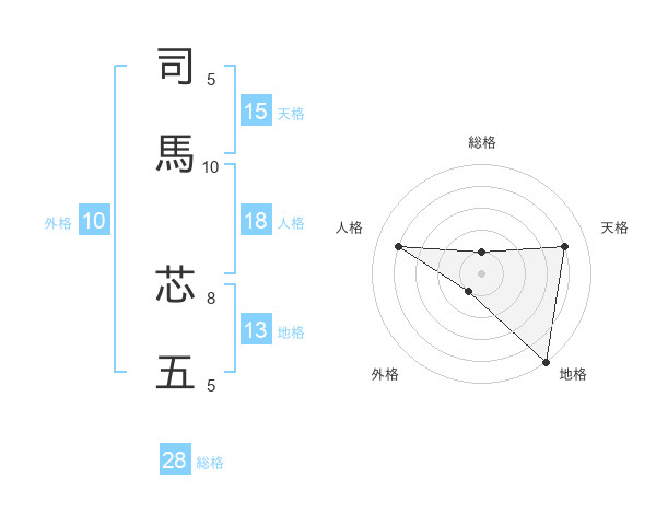 司馬 芯五さんの地格は13画の5点!