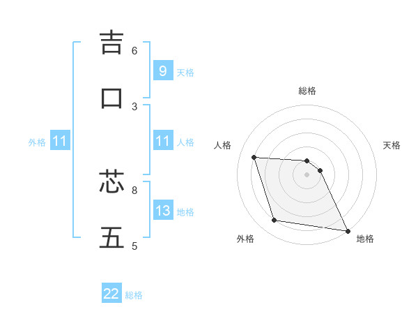 吉口 芯五さんの総格は22画の1点!