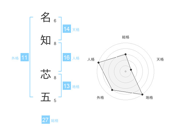 名知 芯五さんの総格は27画の3点!
