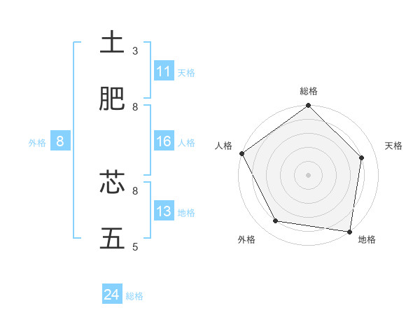 土肥 芯五さんを姓名の画数から五運を鑑定