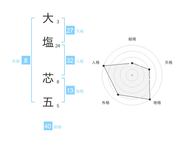 大塩 芯五さんを姓名の画数から五運を鑑定