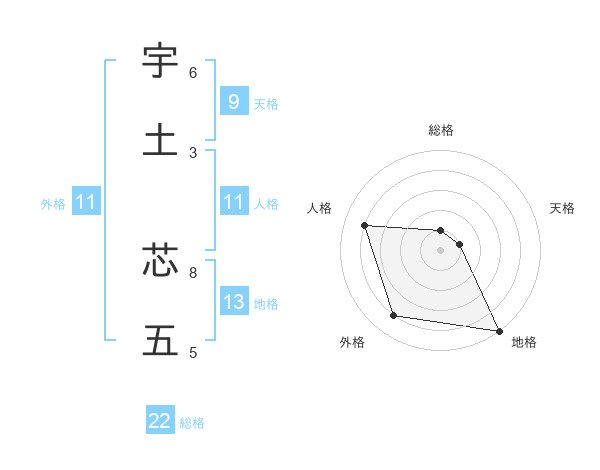 宇土 芯五さんの総格は22画の1点!