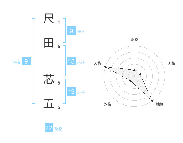 尺田 芯五さんを姓名の画数から五運を鑑定