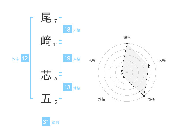 尾﨑 芯五さんの総格は31画の5点!