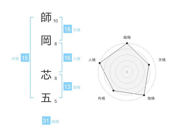 師岡 芯五さんの総格は31画の5点!
