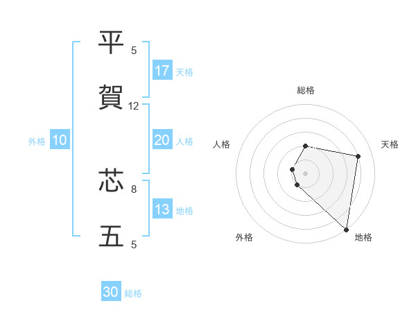 平賀 芯五さんの天格は17画の4点!