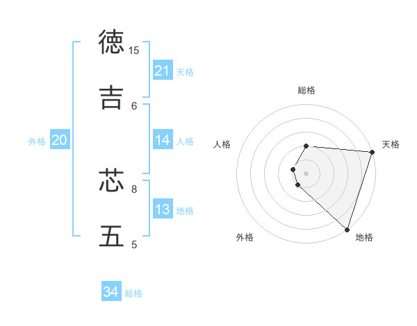 徳吉 芯五さんを姓名の画数から五運を鑑定