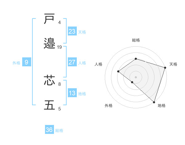 戸邉 芯五さんを姓名の画数から五運を鑑定