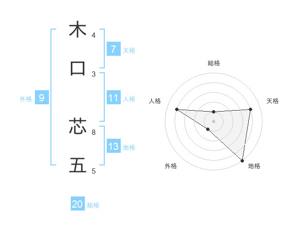 木口 芯五さんの総格は20画の1点!