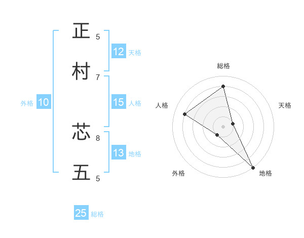 正村 芯五さんの総格は25画の4点!