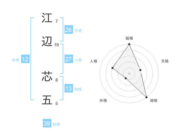 江辺 芯五さんの総格は39画の5点!