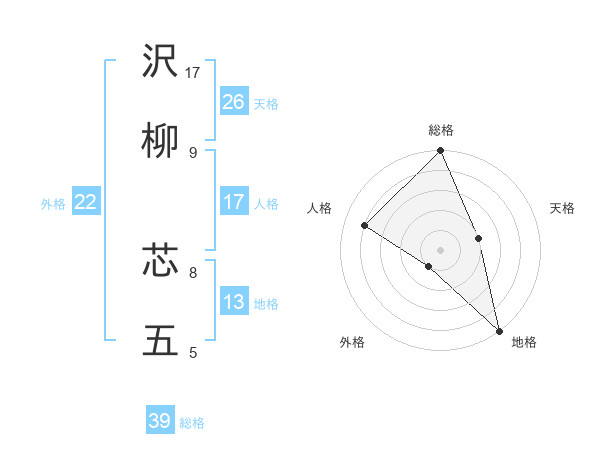 沢柳 芯五さんの総格は39画の5点!