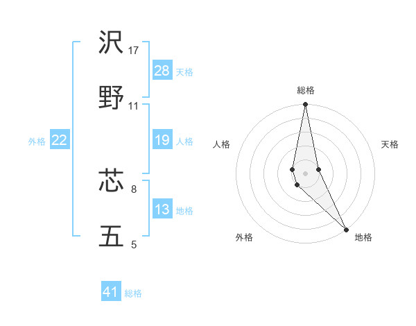 沢野 芯五さんの総格は41画の5点!