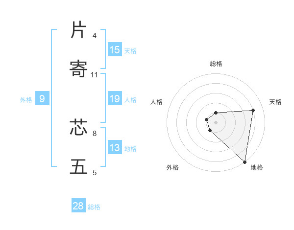 片寄 芯五さんの天格は15画の4点!