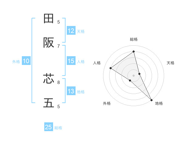 田阪 芯五さんを姓名の画数から五運を鑑定