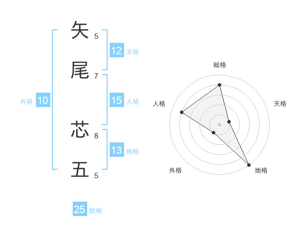 矢尾 芯五さんの総格は25画の4点!
