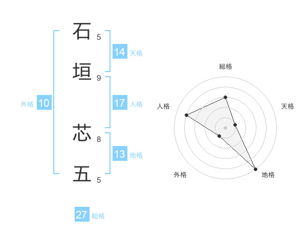 石垣 芯五さんの総格は27画の3点!
