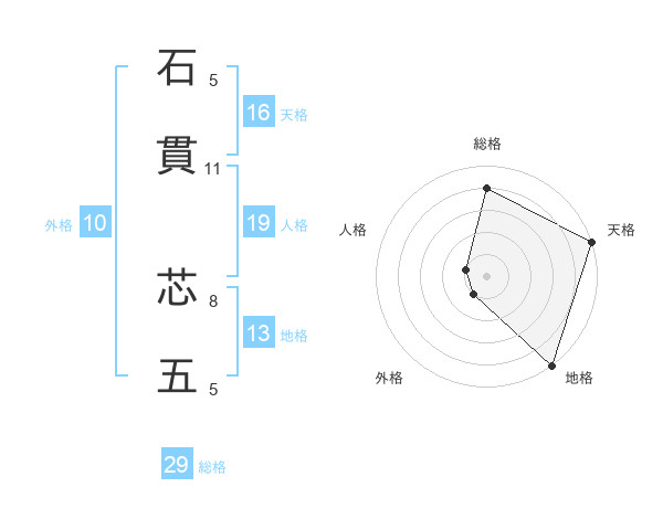 石貫 芯五さんを姓名の画数から五運を鑑定
