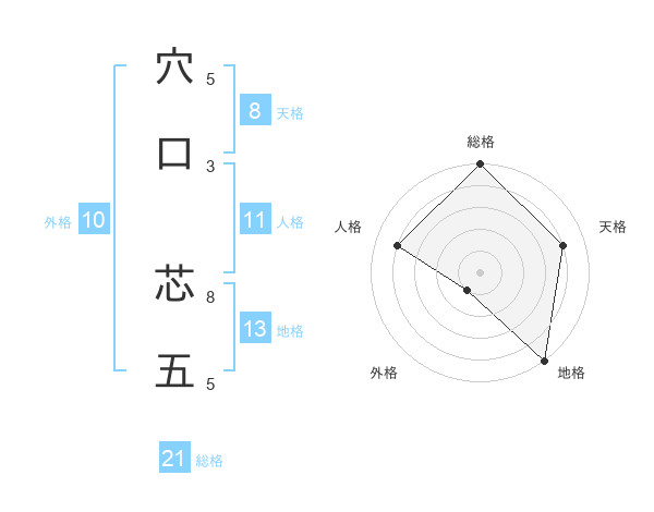 穴口 芯五さんを姓名の画数から五運を鑑定