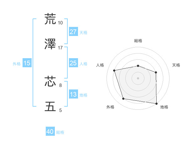 荒澤 芯五さんを姓名の画数から五運を鑑定