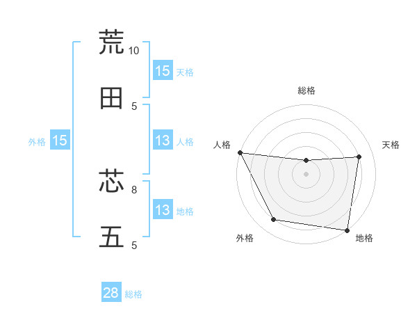 荒田 芯五さんを姓名の画数から五運を鑑定