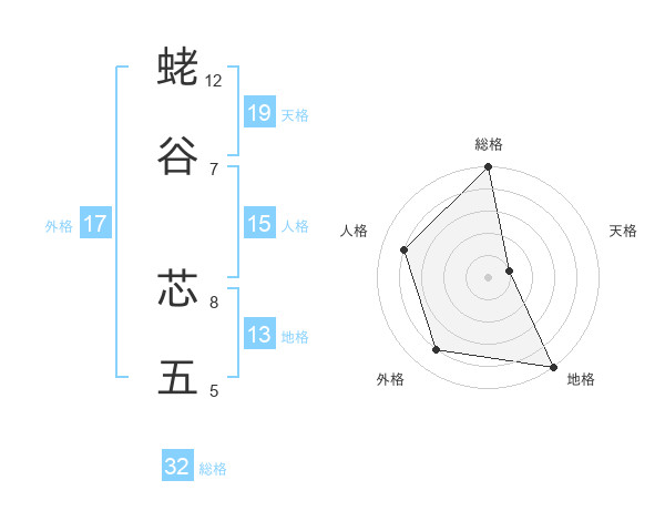 蛯谷 芯五さんの総格は32画の5点!