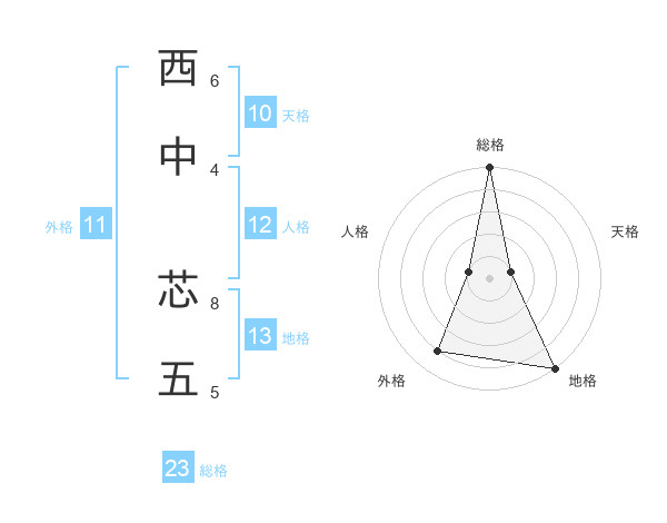 西中 芯五さんの総格は23画の5点!