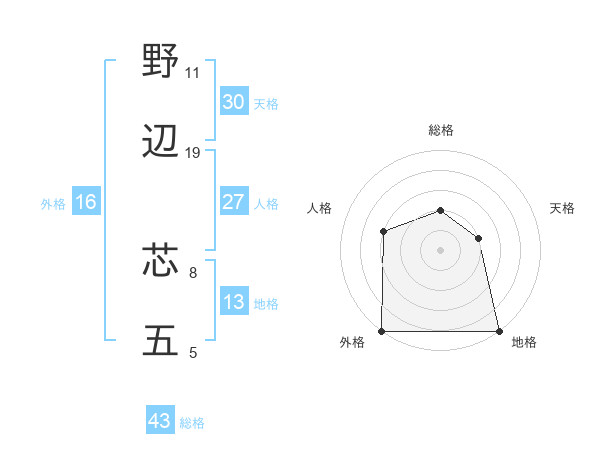 野辺 芯五さんを姓名の画数から五運を鑑定