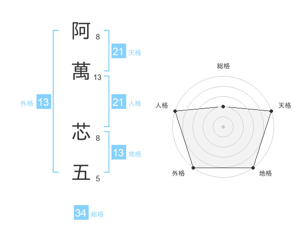 阿萬 芯五さんの外格は13画の5点!