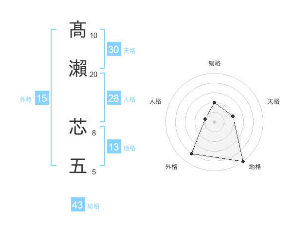 髙瀨 芯五さんの総格は43画の2点!