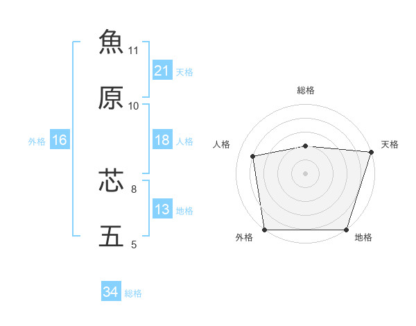 魚原 芯五さんの天格は21画の5点!