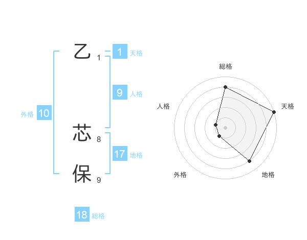 乙 芯保さんの総格は18画の4点!