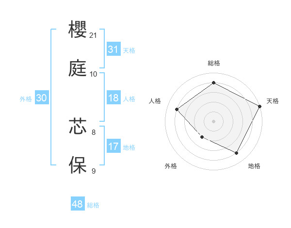 櫻庭 芯保さんの天格は31画の5点!