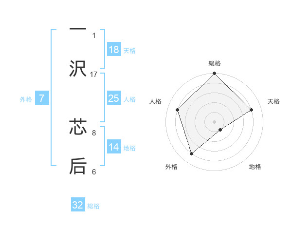 一沢 芯后さんの天格は18画の4点!
