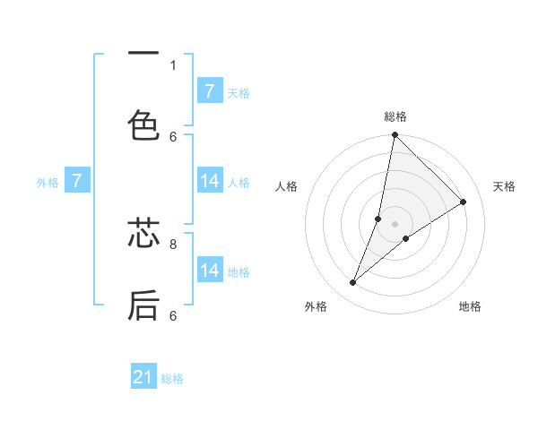一色 芯后さんの総格は21画の5点!