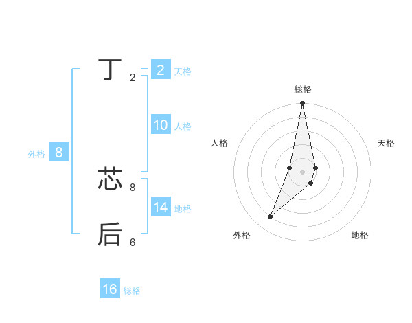 丁 芯后さんの総格は16画の5点!