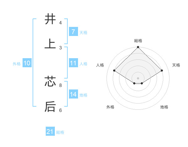 井上 芯后さんの総格は21画の5点!