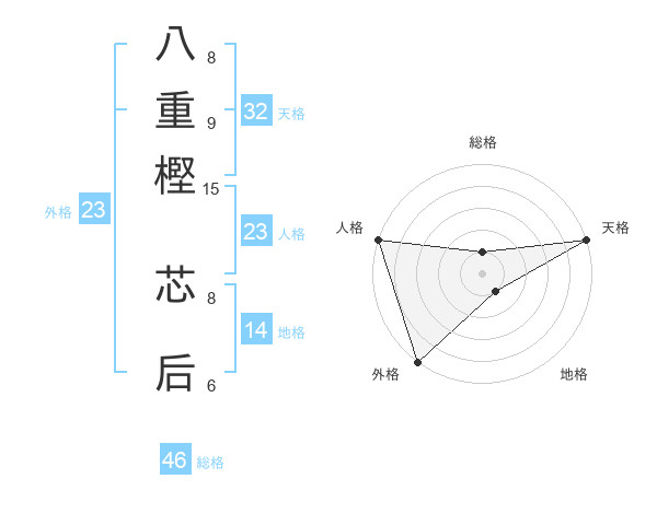 八重樫 芯后さんを姓名の画数から五運を鑑定