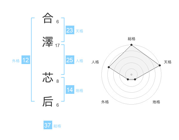 合澤 芯后さんを姓名の画数から五運を鑑定