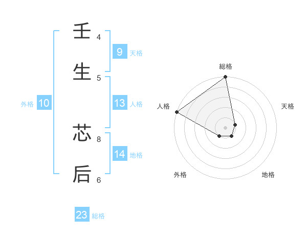 壬生 芯后さんの総格は23画の5点!