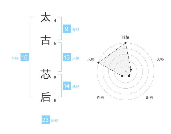 太古 芯后さんの総格は23画の5点!