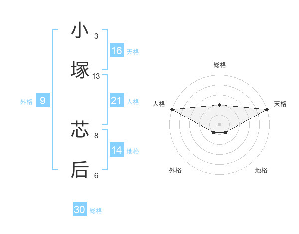 小塚 芯后さんを姓名の画数から五運を鑑定