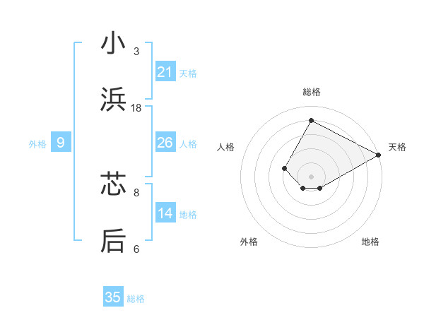 小浜 芯后さんの総格は35画の4点!