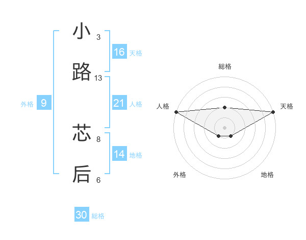 小路 芯后さんの天格は16画の5点!