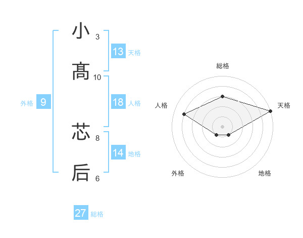 小髙 芯后さんを姓名の画数から五運を鑑定