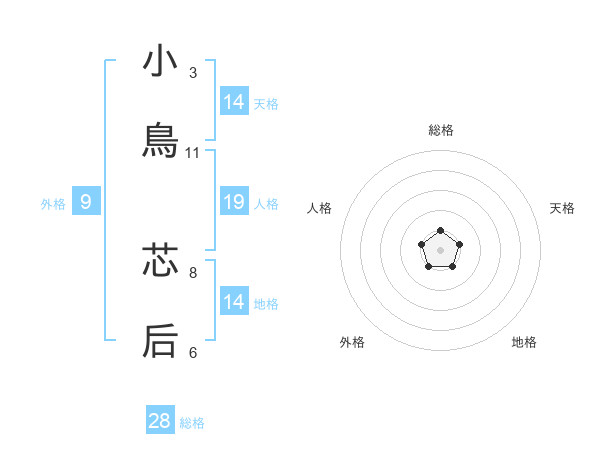 小鳥 芯后さんの総格は28画の1点!