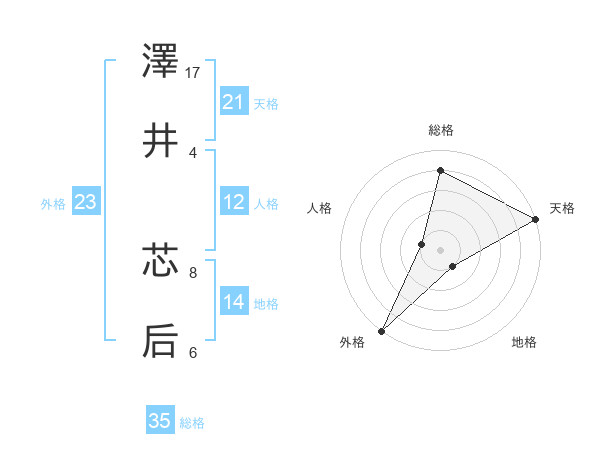 澤井 芯后さんの天格は21画の5点!