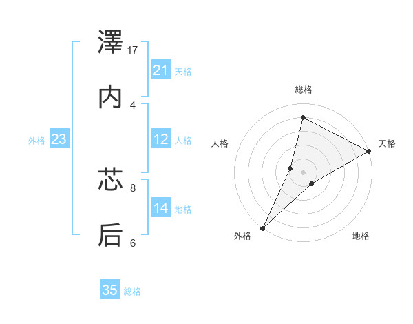 澤内 芯后さんの外格は23画の5点!