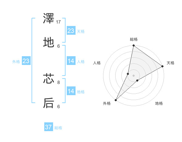 澤地 芯后さんの天格は23画の5点!