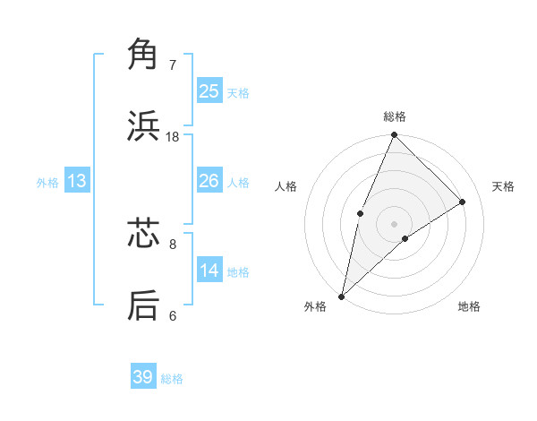 角浜 芯后さんの総格は39画の5点!